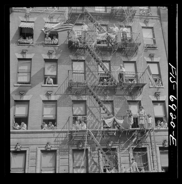 New York, New York. Italian-Americans in the rain watching a flag raising ceremony in honor of neighborhood boys in the United States Army