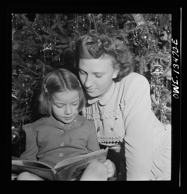 New York, New York. Martinetti grandchild and her aunt at the Christmas tree. The pin indicates that her uncle is in the United States Army
