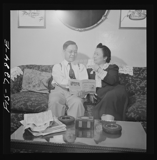 New York, New York. Mr. Fing, a Chinese-American merchant, and his wife in their Flatbush home. Notice the rubber tire ashtrays