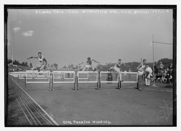 Newark, Earl W. Thompson wins 120 yds. hurdles