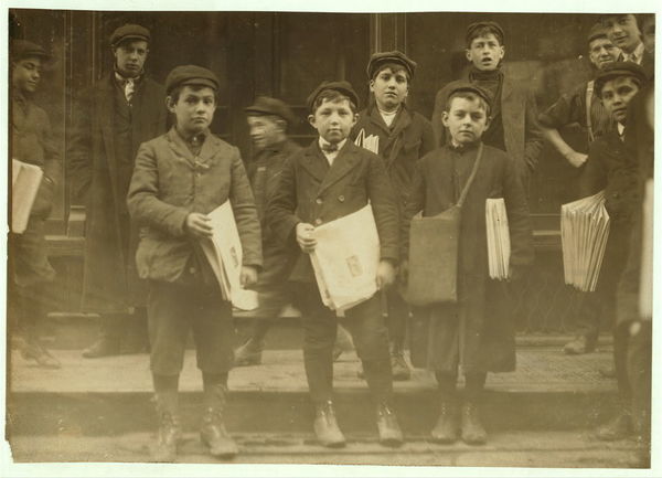 Newsboys, 9, 10 and 11 years old. Location: New Haven, Connecticut. / Photo by ...