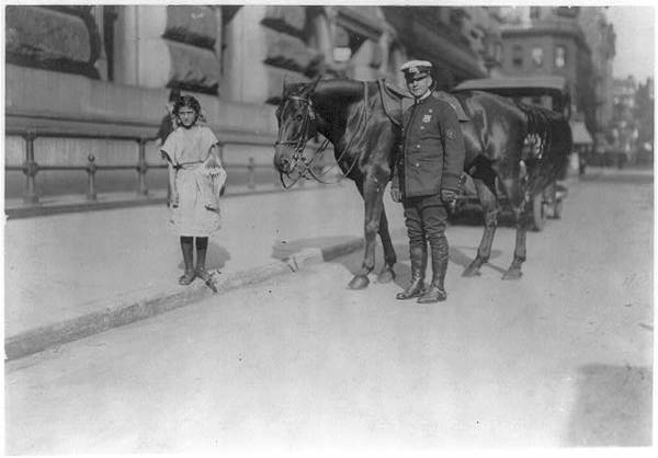 Newsgirl, Park Row. Against the law, but "who cares." Location: New York, New York (State)