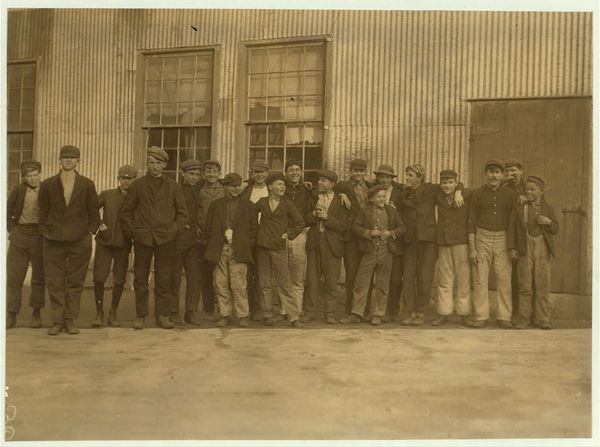 A group of "carrying-in-boys" at Cumberland Glass Works. This is a typical group of carrying-in-boys in South Jersey. Location: Bridgeton, New Jersey.