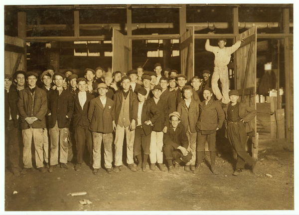 Night shift going to work. More-Jonas i.e., Jones? Glass Works, Bridgeton, N.J. Three of these boys may be under 14. Location: Bridgeton, New Jersey.