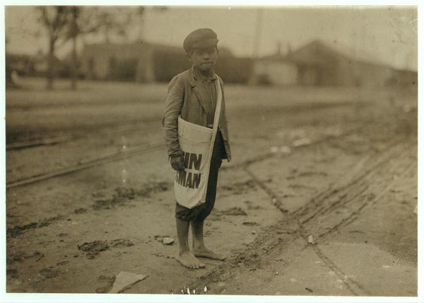 Eleven year old newsie who has been selling for three years. He gets up at 2:30 A.M. Sundays, and at 5:00 A.M. school days. Makes about $1.25 a day. Norval Sharp. Photo taken early Sunday morning. Location: Austin, Texas.