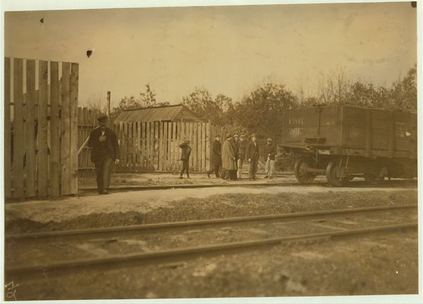 A group working on night shift at Hereford Glass Works, Cape May Court House, N.J. Nov. 19, 1909. I saw the smallest boy carrying in shortly before midnight, November 18th. Location: Cape May, New Jersey.