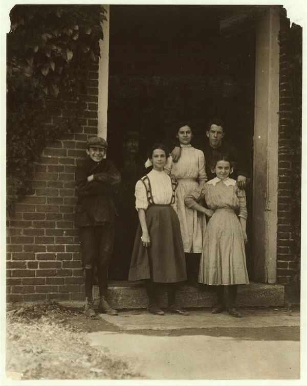 Noon hour, Holden-Leonard Co., Bennington, Vt. Some of the youngsters working there. Work was slack and the force small. Location: Bennington, Vermont.
