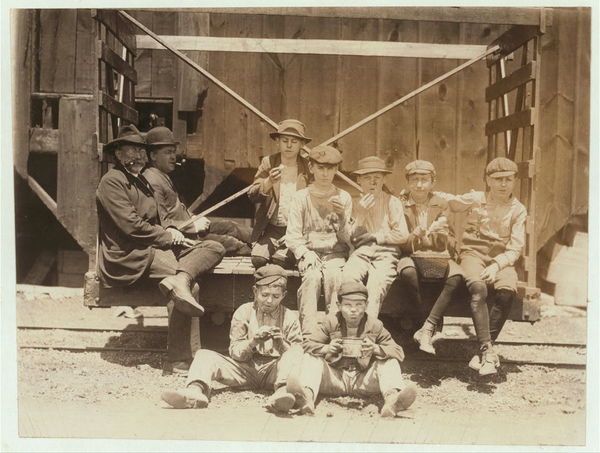 Noon hour. Illinois Glass Co., (Shop #7.) These boys all work in above glass company. Tuesday noon. Location: Alton, Illinois.