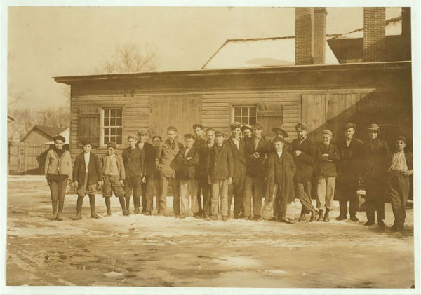 Noon hour. Moore Bros. Glass Co., Clayton, N.J. All are workers. Location: Clayton, New Jersey.