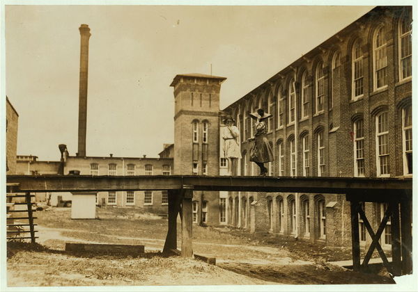 Noon hour. Two of the young doffer-boys working in the Laurel Cotton Mills, Laurel, Miss.  Location: Laurel, Mississippi.