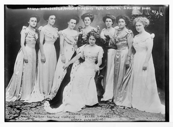 Norma Hornberger, Queen of Asbury Park Carnival & maids of honor, Marg. Gordon, Eleanor Sherwood, Lavinia Fry, Nina Olmstead, Beatrice Connelly, Helen Demarest, Norma Hornberger