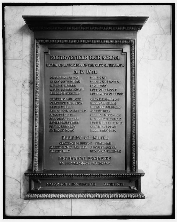 Northwestern High School, plaque in entrance, Detroit, Mich.