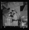NYA (National Youth Administration) work center, Brooklyn, New York. Two welders, who are receiving training in machine shop practice, building up an undersize shaft by arc welding to be re-machined to size