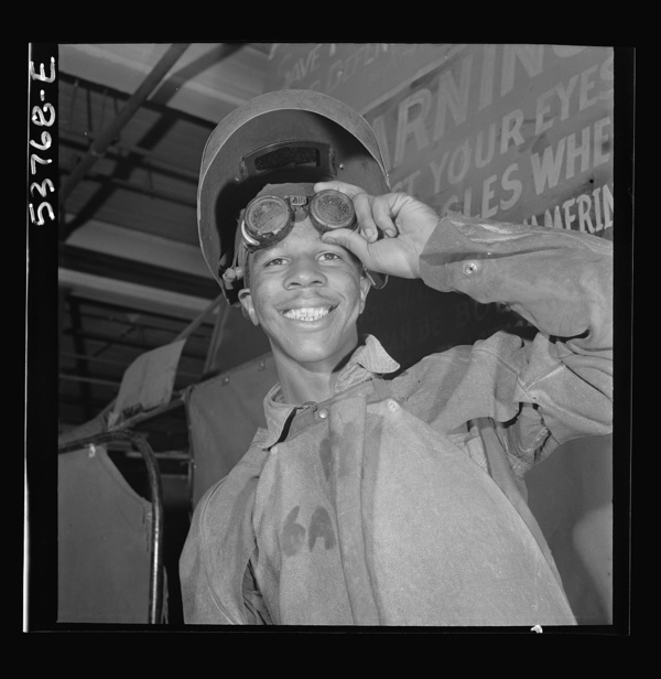 NYA (National Youth Administration) work center, Brooklyn, New York. A Negro who is receiving training in machine shop practice shown in his welder's outfit