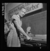 NYA (National Youth Administration) work center, Brooklyn, New York. Two bench workers, one white and one a Negro, who are receiving training in machine shop practice, removing the burrs from a side piece for a metal pulley block