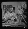 NYA (National Youth Administration) work center, Brooklyn, New York. A Negro bench-lathe worker, who is receiving training in machine shop practice, gauging a screw just removed from the collet