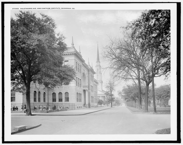 Oglethorpe Ave. Avenue and Chatham Institute i.e. Academy, Savannah, Ga.