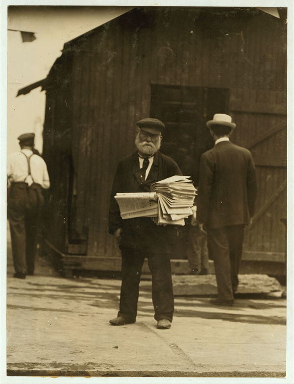 Old paper man on East Side. N.Y., July, 1910. Location: New York, New York (State)