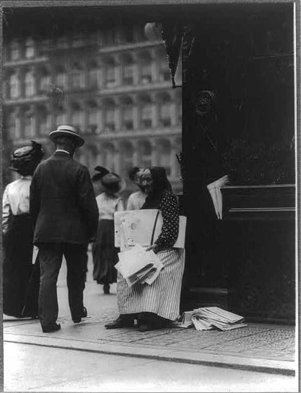 Old Paper Woman, B'roadway. Location: New York, New York (State)