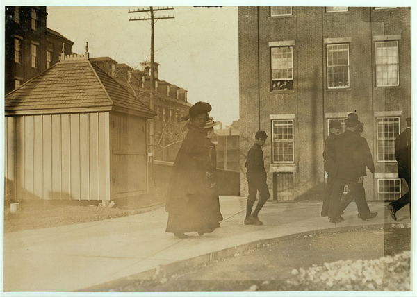 Employees going to work in Bates Mfg. Co. Lewiston, Me. Location: Lewiston, Maine