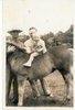 Young Bob Birdwhistell getting on a horse for the first time around 1940 or 1941 with Ezra Clevel...