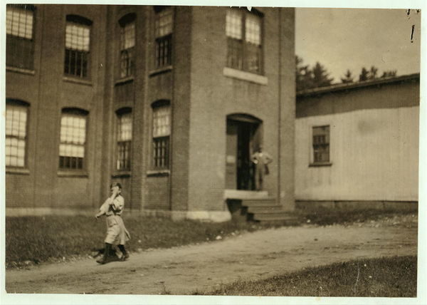 Smallest is Anatole Gernon, Maple St. Apparently 11 or 12 years old. Doffs on top floor spinning room of Glenallen Mill. Speaks no English. Location: Winchendon, Massachusetts.