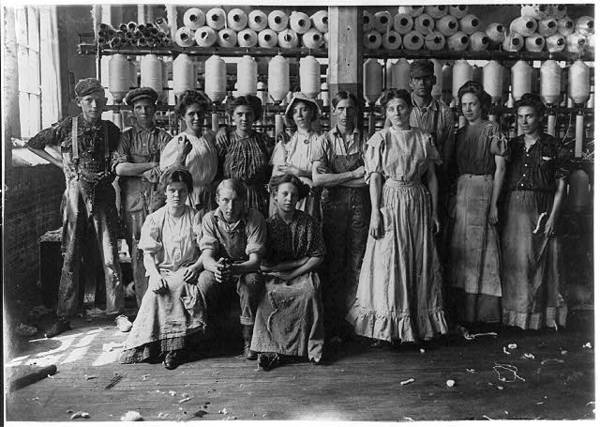 Operatives in Indianapolis Cotton Mill. Noon Hour. Aug., 1908. Wit., E. N. Clopper. Location: Indianapolis, Indiana.
