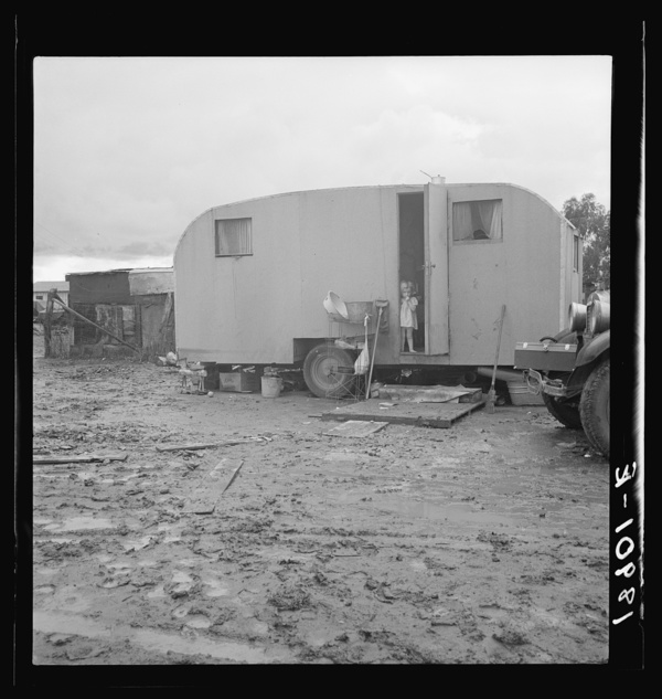 Orange packer of Sunkist oranges. Self-built trailer. California