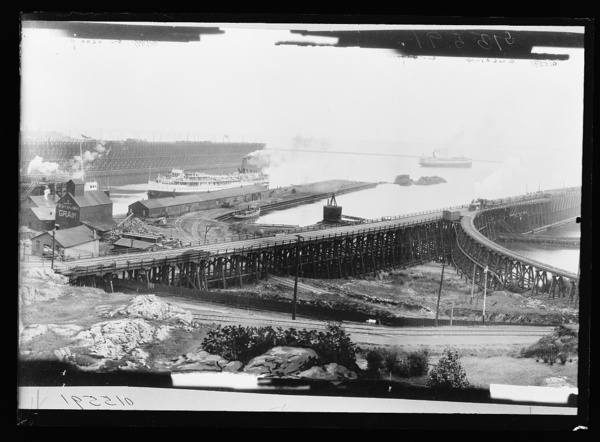 Ore or coal docks and Anchor Line dock at the harbor, Marquette, Mich.