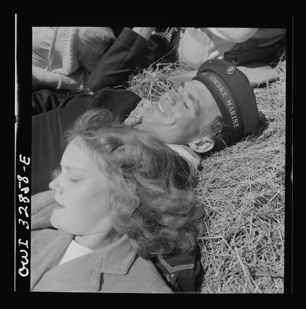 Oswego, New York. A Norwegian sailor and an Oswego girl on a hayride during United Nations week