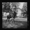 Oswego, New York. Children playing on a bronze elk in front of the Elk's Club