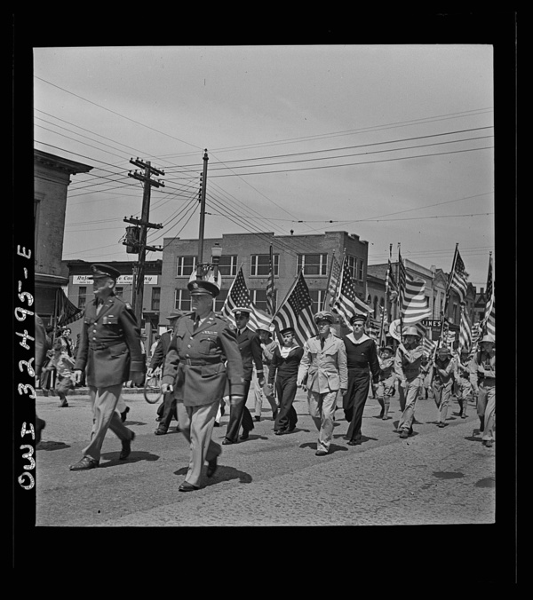 Oswego, New York. United Nations heroes marching in the Flag Day parade during United Nations week
