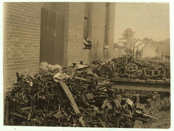 Other junk (See #2962). A pile of scrap machinery outside the Carolina Cotton Mill. This kind cost money. Who cares about the other kind?. Location: Spartanburg, South Carolina.