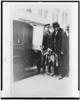 Chimpanzee in clothing at door of automobile, with three men, at Napoleon Hippodrome