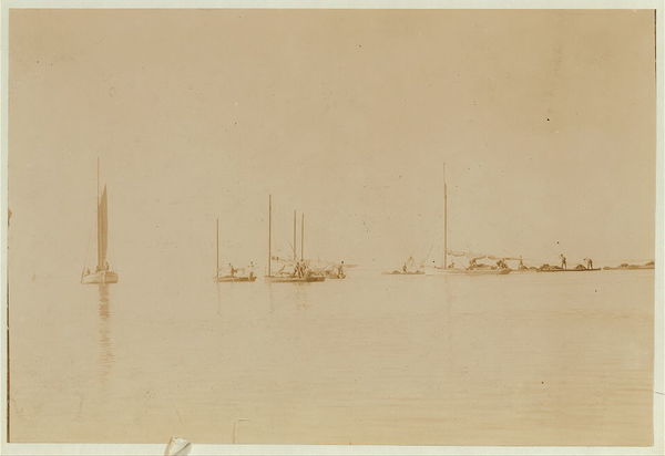 Oyster fleet fishing on the reefs. Location: Mobile Bay, Alabama.
