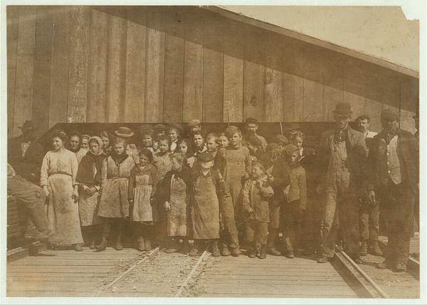 Group of oyster-shuckers all working in Alabama Canning Co., from seven years upward. Location: Bayou La Batre, Alabama.