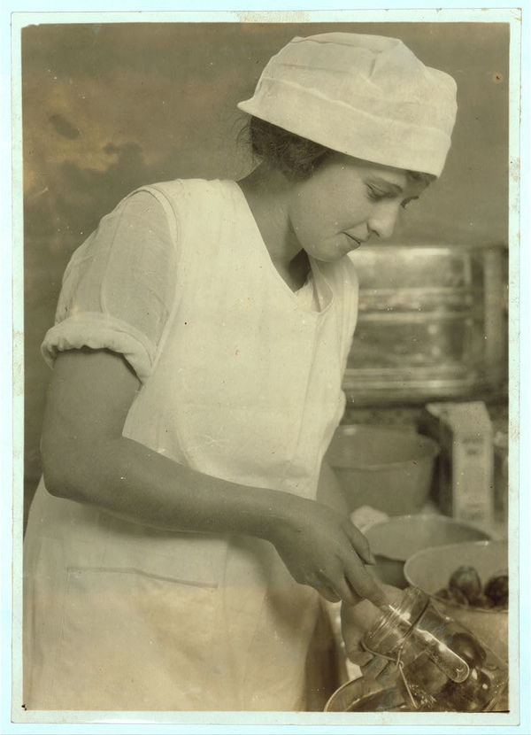 Packing plums. A "Demonstration team" composed of three prize-winning Cabell County girls. State 4 H Fair. (See Photos No. 48, 49, 50.) Location: Charleston, West Virginia.