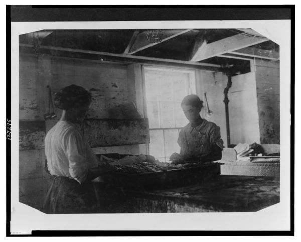 Packing sardines in Seacoast Canning Co., Factory #7, Eastport, Me. The Boss would not let nine year old Minnie pose, although she works with her mother, packing even far into the night. (See #2439.) Location: Eastport, Maine.