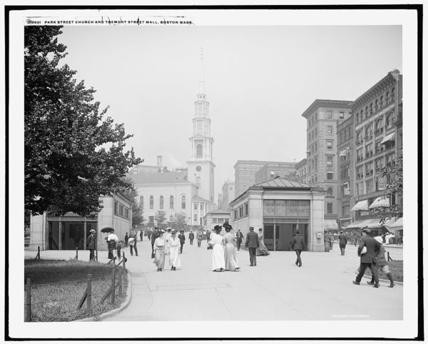 Park Street Church and Tremont Street mall, Boston, Mass.