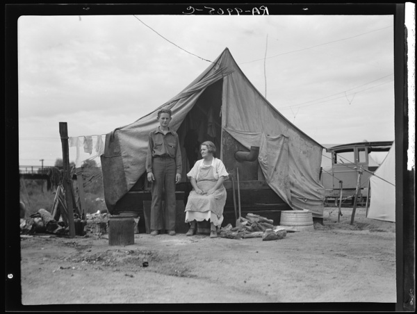 Part of migrant family of five encamped near Porterville, California, while waiting for work in the orange groves