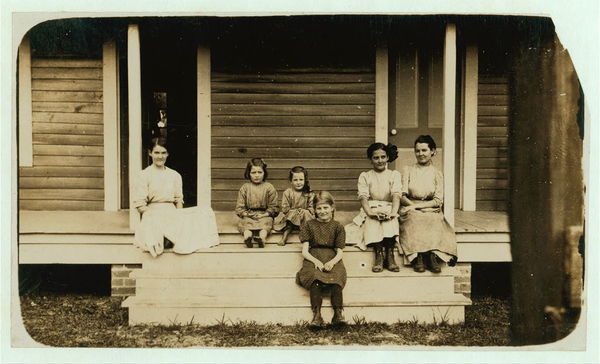 Part of the Nettles family. Nine in family. Five in the Magnolia Cotton Mills. Little girl in front is Lillian (see 2091). Location: Magnolia, Mississippi.