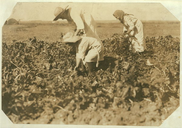 Part of Walker family pulling and piling beets. See label 4018. Location: Sterling vicinity, Colorado / Photo by Hine, Oct. 1915