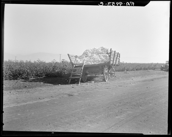 Partially loaded cotton wagon. Southern San Joaquin Valley, California
