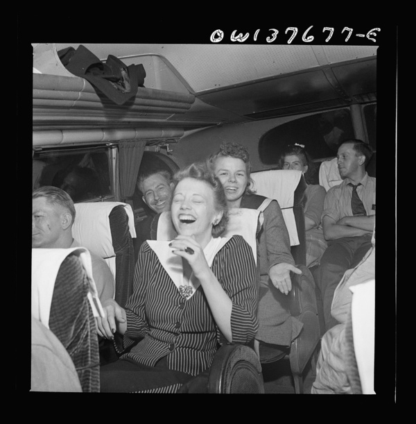 Passengers, who have struck up a friendship on a Greyhound bus enroute from Pittsburgh, Pennsylvania to Saint Louis, Missouri telling "moron" jokes