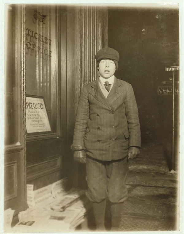 Paul Cory, 14 years old. Photo taken at 10 P.M. said he sometimes sold until midnight. Location: Buffalo, New York (State)