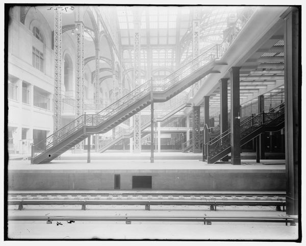 Pennsylvania Station, main concourse, track levels, stair entrance, New York, N.Y.