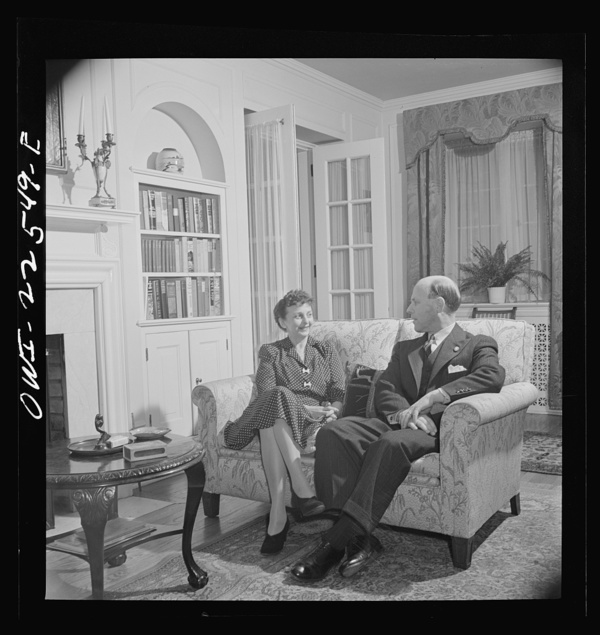 Philadelphia, Pennsylvania. Swedish-American engineer at the SKF roller bearing factory with his wife at home