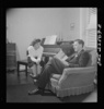 Swedish-American foreman at the SKF roller bearing plant reads to his Italian-American wife at home. Philadelphia, Pennsylvania