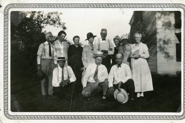 Prominent Baptist ministers at a meeting at Goshen. From left to right: Rev WD Moore, JL Adkins...