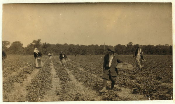 Picking strawberries on Clagett and Covington farm. They will have 500 pickers in the height of the season. Not many young workers yet. Location: Bowling Green vicinity, Kentucky. / L.W. Hine.